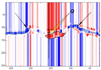 Выделены две скоростных аномалии. Центральной белое пятно хорошо видно на