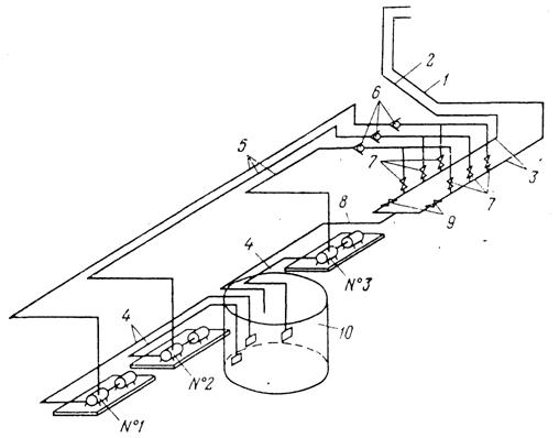 трубопроводами со всеми пожарными гидрантами, расположенными на промплощадке
