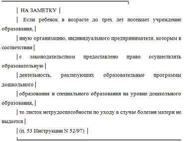 возрасте до трех лет, болезнь матери" (подп. 73.4 Инструкции N 52/97), а в