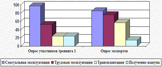 целей торговли людьми, мы спрашивали экспертов (опрос экспертов) об одной из