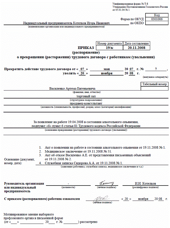 Порядок увольнения работника за появление на работе в состоянии опьянения