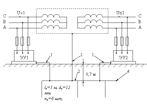 освещенного ЗУ в системе защитного ЭУ напряжением до и свыше 1 кВ