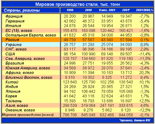 Кризис 2001 г. заставил производителей черных металлов сокращать объемы