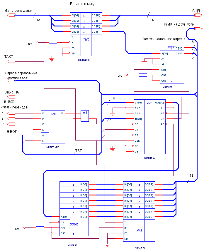 курсовому проекті необхідно розробити ЕОМ, що складається з процесора (П),