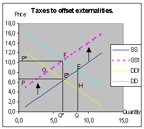 externality is E*F. By levying this tax of exactly E*F
