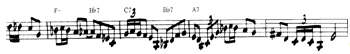 соответствует принципам инструментального бибопа. Ограничена протяженность и