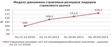величины страховых резервов топ-10 лидеров рынка по взносам к базовому уровню