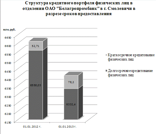 долгосрочных кредитов физическим лицам можно сделать вывод, что в отделении ОАО