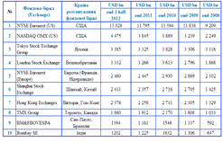 світових біржах у 2012 році за даними WFE, млн. USD [46]