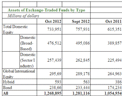 фондами ETFs (Exchange-Traded Funds) в США у 2011 - 2012 рр., млн.USD [73]