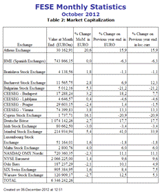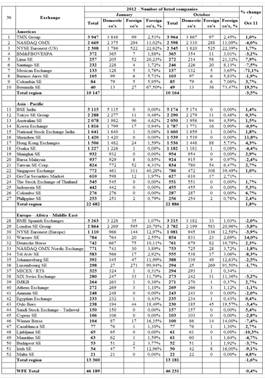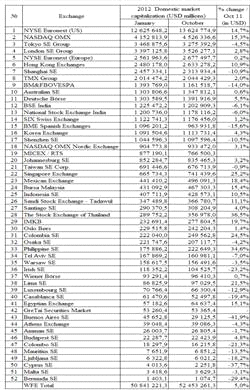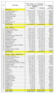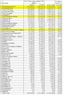 бірж світу на протязі 2012 року за даними Світової Федерації бірж (WFE) в млн.