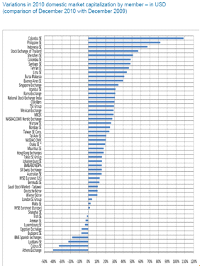 капіталізації основних світових фондових бірж за 2010 рік ( в % до рівня 31