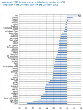 капіталізації основних світових фондових бірж за 2011 рік ( в % до рівня 31