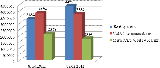карточек, находящихся в обращении по состоянию на 1 апреля 2012 года составило