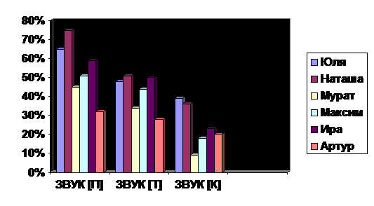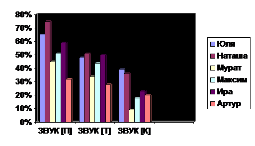Диаграмма № 1 Произношение звуков п, т, к изолированно