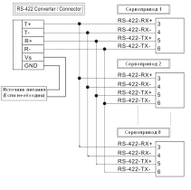 использовать подключение сервопреобразователей через интерфейс RS-422.