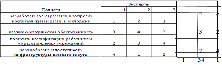 Здесь эксперты присваивают ранги (места) подцелям, выполняя следующее