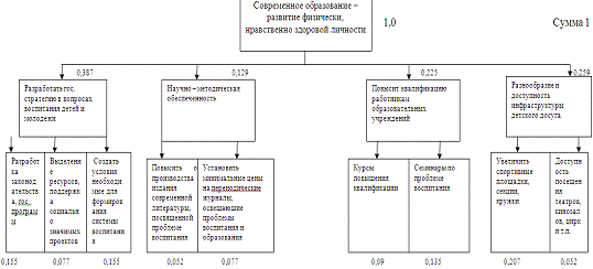 построим дерево целей и деревья мероприятий, рассчитаем коэффициенты