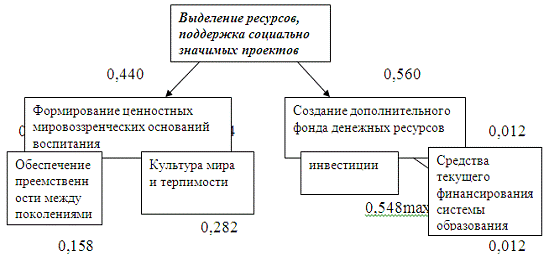 Наша задача определить КОВ подцелей, т.е. их удельный вес в составе