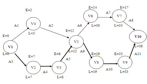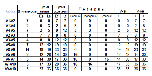Критический путь: V1 - V2 - V3 - V5 - V8 - V9 - V10. Таким образом,