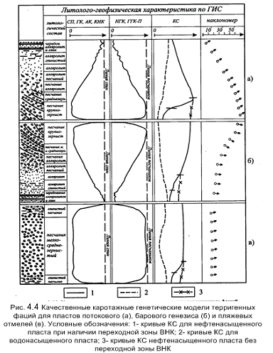 кривым ПС и ГК), в том числе с использованием фациальных моделей Томского