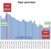 2012 г. характеризовалась умеренной нестабильностью курса национальной валюты и