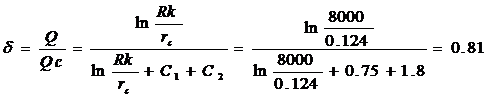 Коэффициент совершенства скважины определяем по