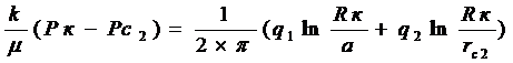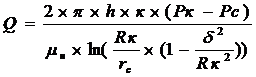 расположения контура нефтеносности на расстоянии rн = Rк от оси