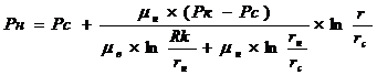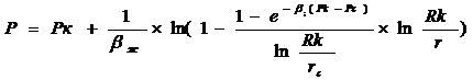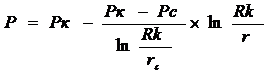 радиусом контура имеет начальное пластовое давление Рк.