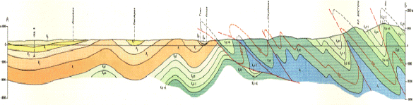 геологическим строением. Сложное складчатое залегание пород нарушается