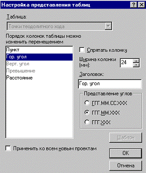 на рисунке. Перед набором тахеометрии, в окне «Настройка представления таблиц»