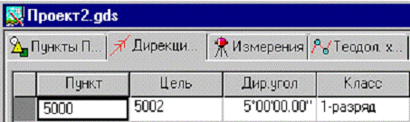 инструмент выбираем <2Т5К>. Наберем данные по тахеометрии, как показано