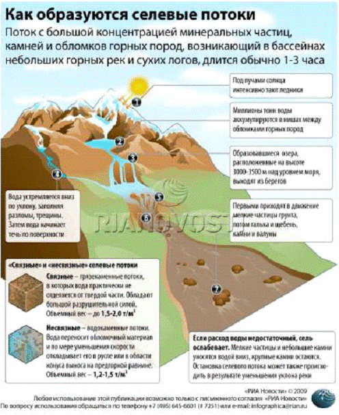 и воды. Сели возникают в результате обильных и продолжительных ливней, в период