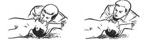 губ потерпілого і швидко роблять глибокий видих йому до рота. Вдування