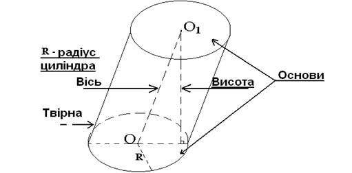 Визначення і загальні властивості циліндра.