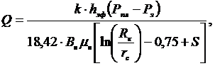 рассчитаем дебит используя уравнение (1.26), при забойных давлениях ниже