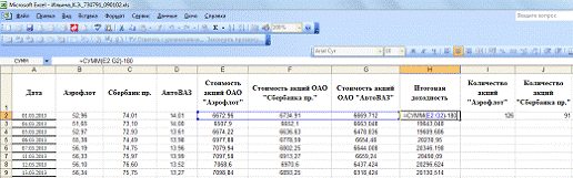 Таблица 2 - Цены акций с 01.03.2012 по 26.09.2013