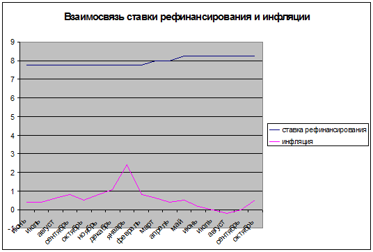 соответственно - уровень инфляции. Чем ниже ставка рефинансирования - тем