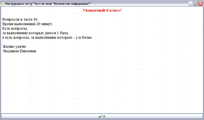 использование повторного теста по информатике в 8 классе по теме «Количество