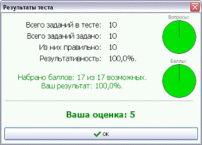 получаем готовый результат (критерии оценки можно изменить при создании теста.