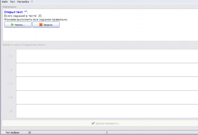 является «плеером тестов». Он позволяет открыть или получить по сети файл с