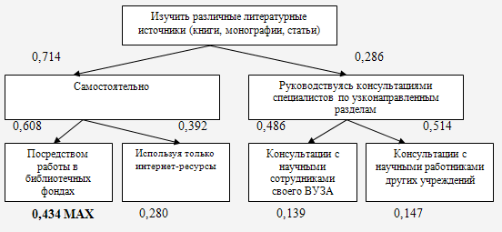дерева целей позволил нам определить весомость подцелей и использовать КОВ для
