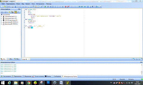 этого в первом окне (где «работает» интерпретатор) появится результат