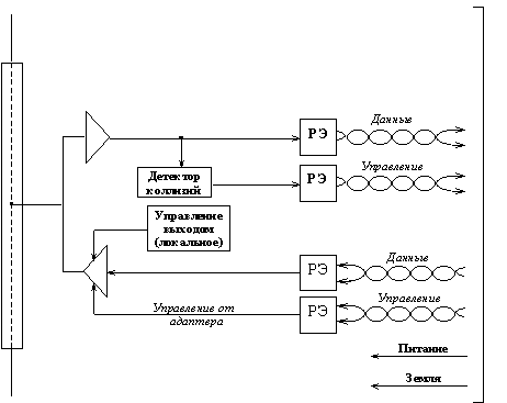 кабелю. Все станции, подключенные к кабелю, могут распознать факт передачи