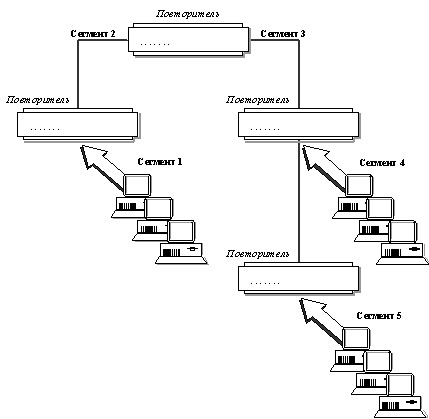 промежуточные сегменты и доходит до приемника (вход Rx) наиболее удаленного