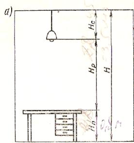 высоту подвеса светильников над расчетной поверхностью и расстояние L между