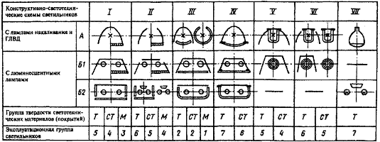 согласно табл. 5 различают 7 эксплуатационных групп светильников.