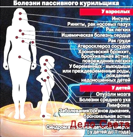 пассивные курильщики имеют риск заболеть болезнями органов дыхания, болезнями