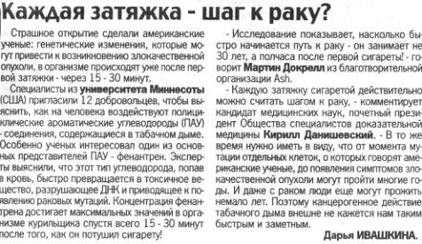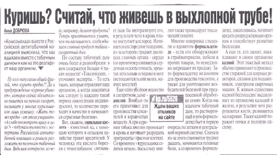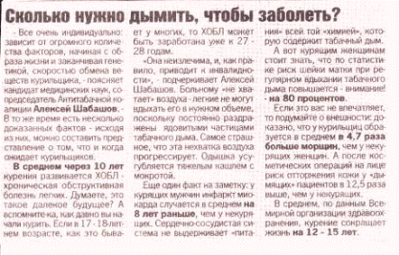 курильщиков расходуется на нейтрализацию вредных веществ, поступающих с