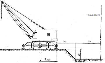самоходного крана около неукрепленного откоса котлована
